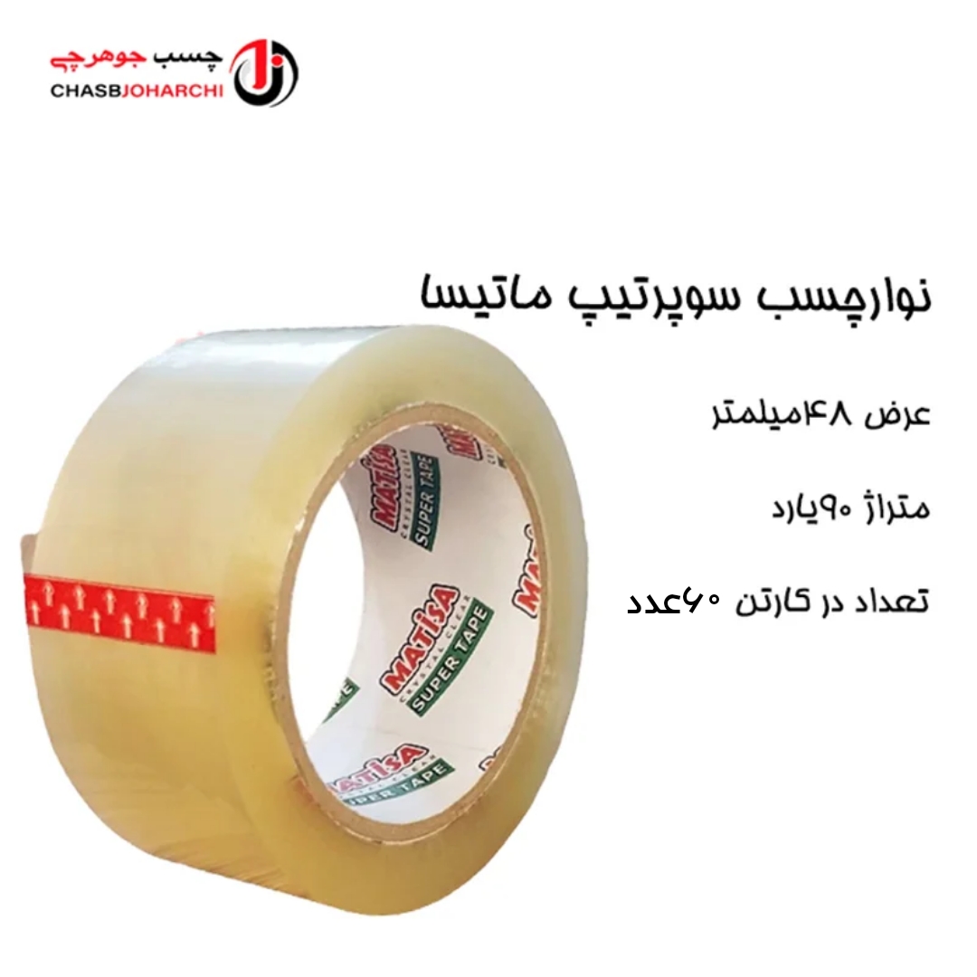 چسب پهن ۹۰ یارد سوپرتیپ ماتیسا، انتخابی ایدهآل برای بستهبندی و محافظت از بستههای شماست. با قدرت چسبندگی فوقالعاده و کیفیت بینظیر، بستهبندیهای شما را محکم و بدون نگرانی نگه میدارد. مناسب برای محیطهای کاری و خانگی، تجربهای متفاوت از چسباندن را با ماتیسا تجربه کنید!