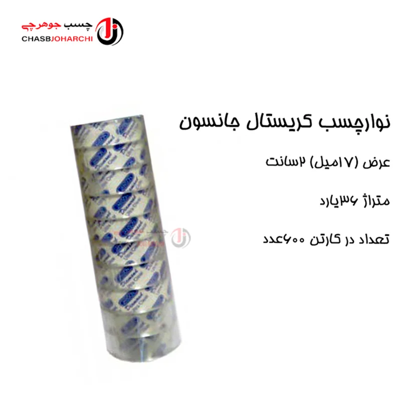 با چسب نواری ۳۶ یارد کریستال جانسون، کیفیت و دوام را تجربه کنید! این چسب شفاف، ایدهآل برای بستهبندی، کاردستی و مصارف خانگی است. با قدرت چسبندگی عالی و قابلیت برش آسان، کارهای شما را حرفهای و مرتب نگه میدارد. همین حالا خرید کنید و سازماندهی بهتری به پروژههایتان ببخشید!